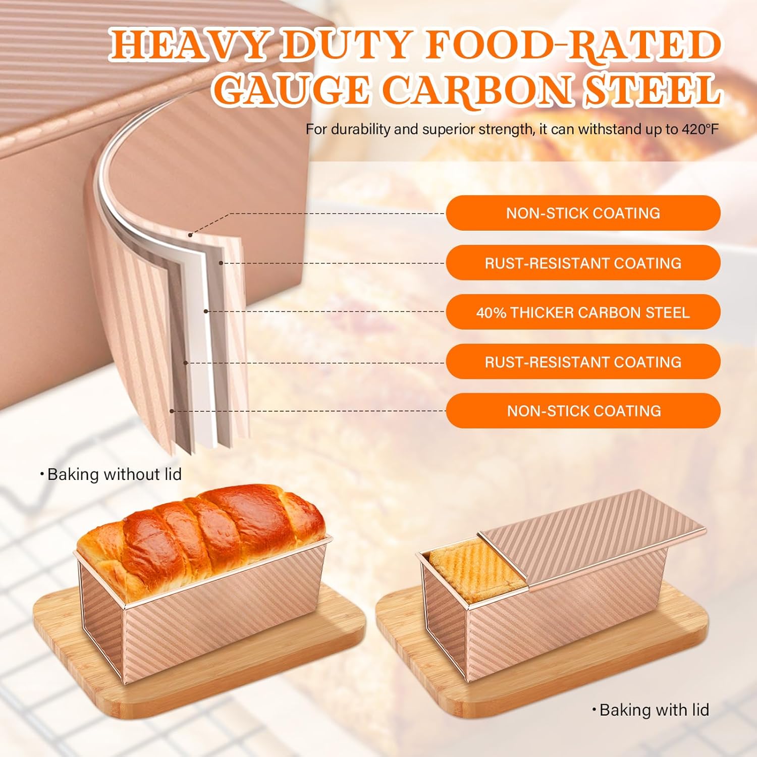 - Superior Non-Stick & Easy Release: Each bread loaf pan with lid features a food-grade, PFOA-free non-stick coating for effortless release and easy cleanup. This loaf pan with lid design helps preserve the perfect shape of sandwich bread, sourdough, and pullman loaves—no sticking.
