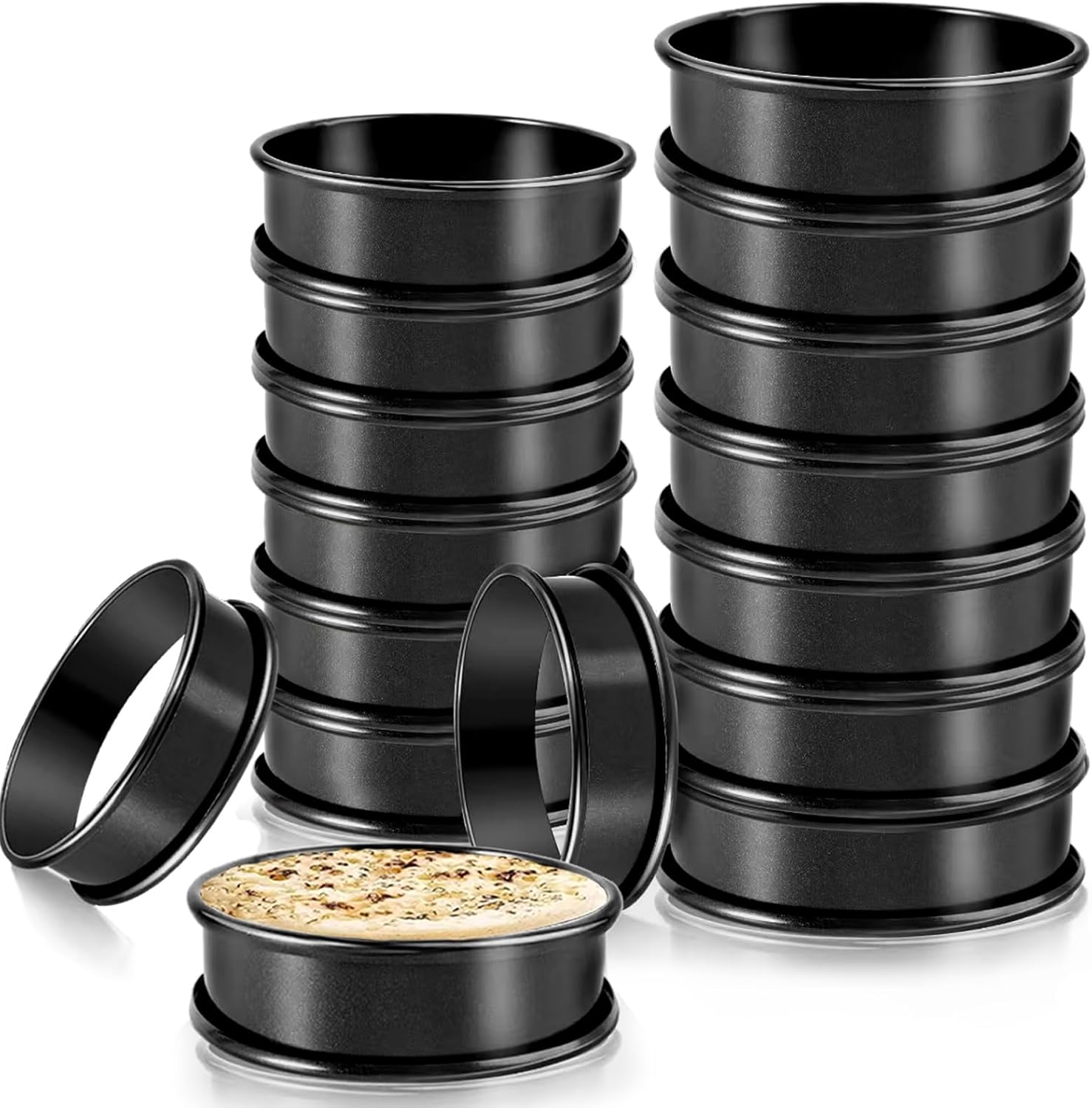 • 【Handy/ Multifunctional Use】: Muffin tart rings for baking are best for making English muffins but can be used to shape crumpets, small pancakes, sandwiches, burgers, biscuits, frying eggs that are perfectly rounded. These Double rolled tart rings mold are also given as gifts by many people and are of very good quality! dishwasher safe.