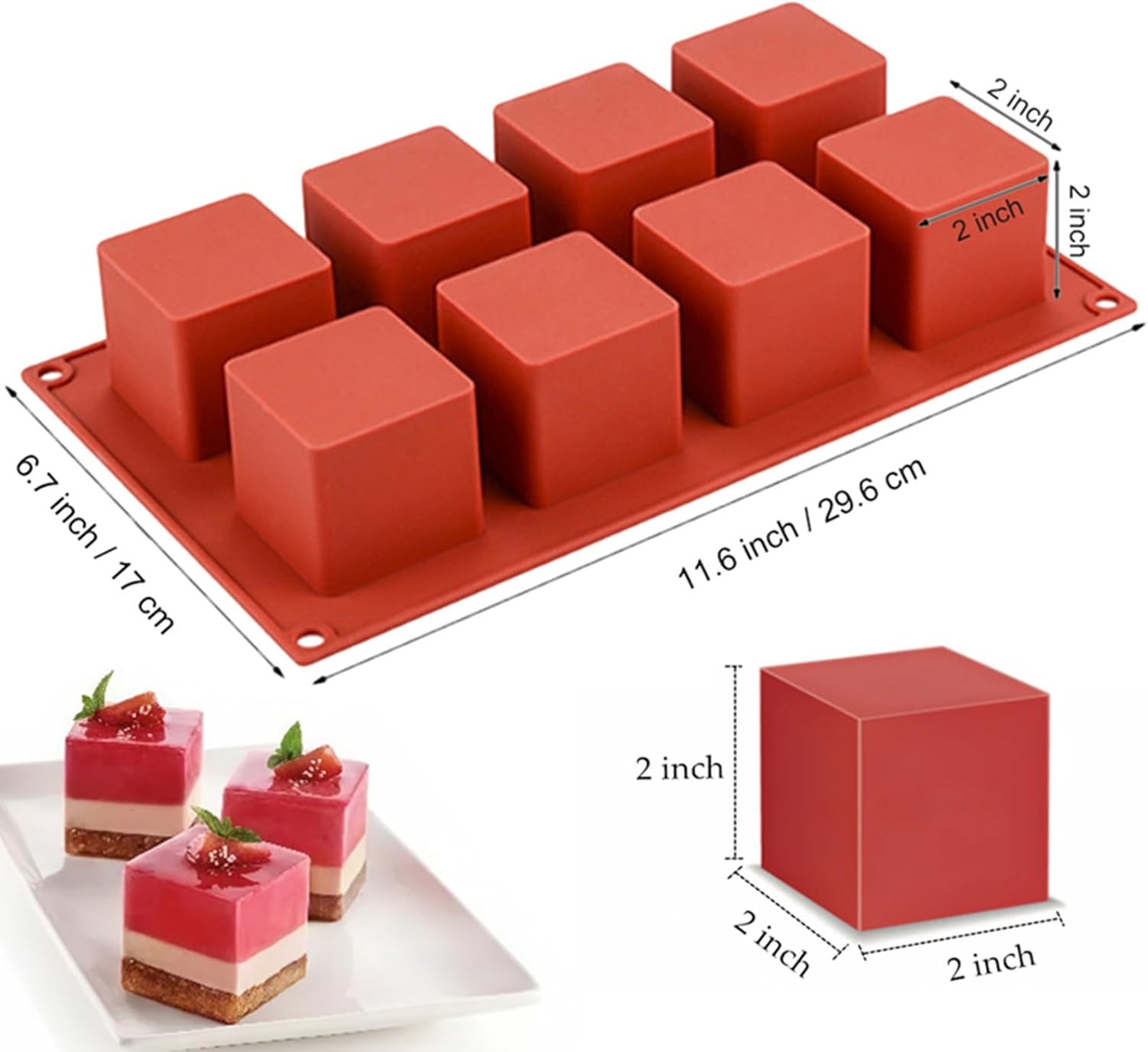 - Multi-function: French dessert baking mold makes 8 perfect small cube desserts at a time, ideal for use as bite size brownie pan, mini mousse cake molds, square shape cake pop mold, truffle mold, chocolate mold, pudding mold, pastry mold, fat bomb, etc! Whatever you want