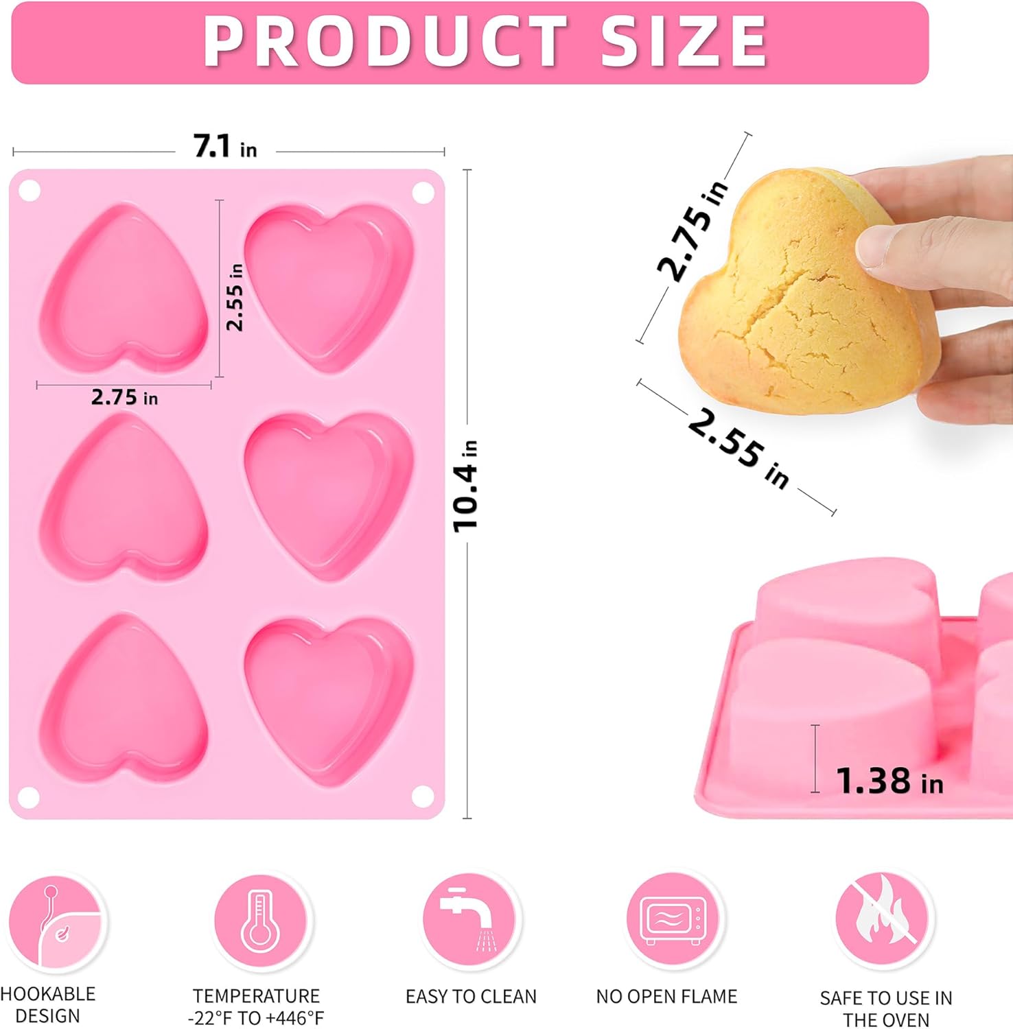 - CONVENIENT HANGING HOLE DESIGN: Experience unparalleled convenience with our heart molds, designed with a thoughtful hanging hole feature for effortless drying and storage. Crafted for ease of use, their smooth, non-stick interior guarantees seamless demolding, delivering flawlessly shaped cakes with every batch.